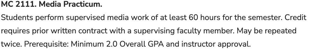 - Media Practicum – earn course credit for doing rather than reading